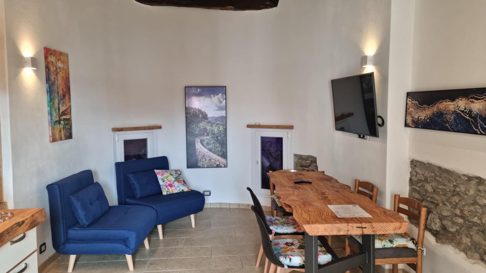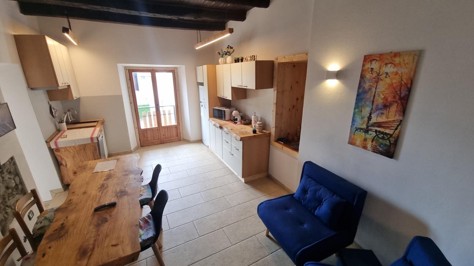 Dotato di balcone in legno, un’ampia camera da letto con letto matrimoniale e due poltrone\letto.