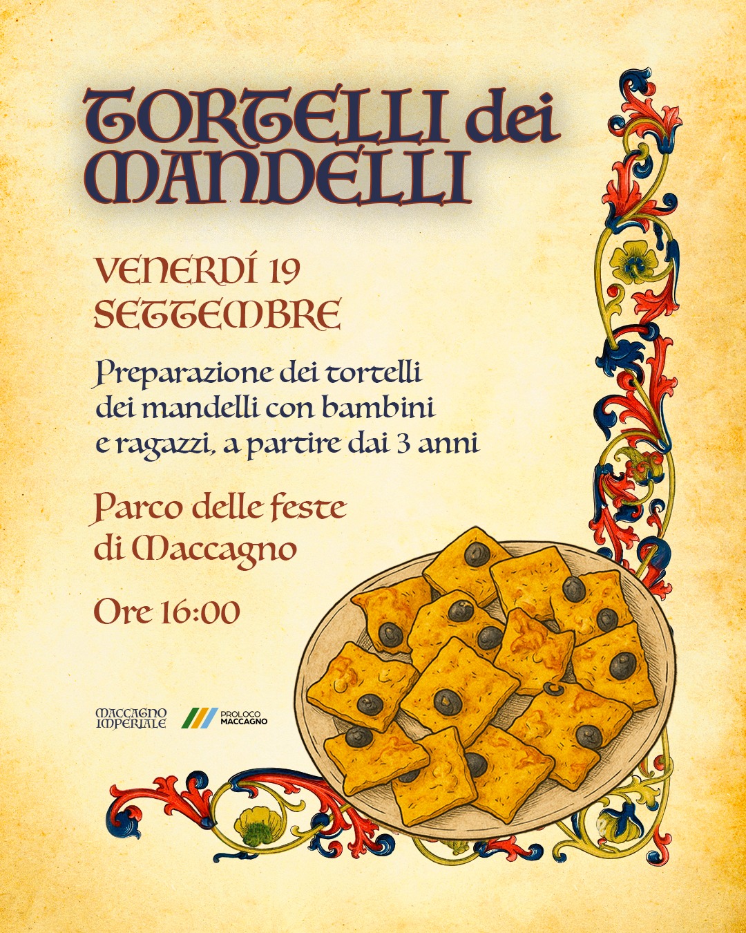 Venerdì 19 settembre i protagonisti saranno i più giovani, con la preparazione dei tipici Tortelli dei Mandelli insieme ai ragazzi delle scuole elementari e medie....