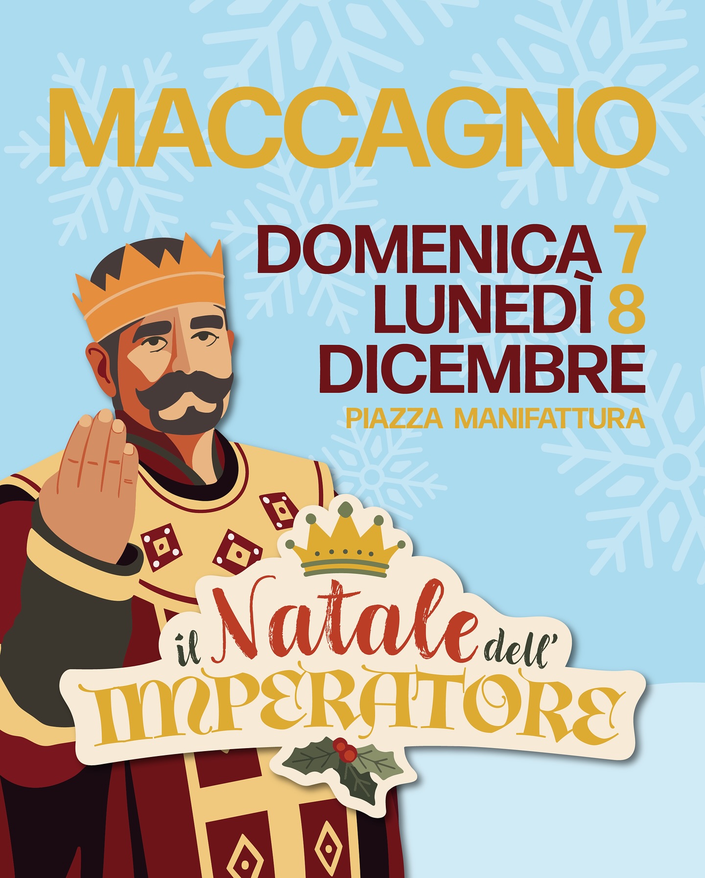 Torna il Natale dell’Imperatore! Ottone in persona vi invita a festeggiare insieme a lui Domenica 7 e Lunedì 8 Dicembre 2025 in Piazza Manifattura e nel centro storico, tra luci, profumo...