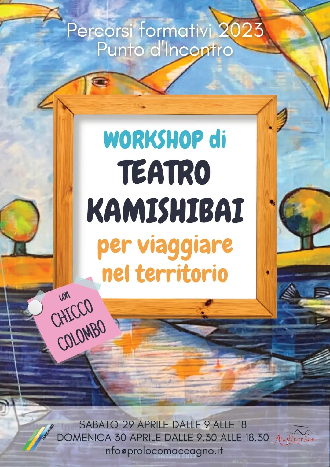 Dalla conoscenza dell’arte del kamishibai alla realizzazione di un percorso narrativo itinerante nel borgo di Maccagno, i partecipanti al workshop si immergeranno nell’atmosfera composta del teatro di carta di origine giapponese, scoprendo diversi stimoli per trovare e raccontare storie del territorio. Grazie alla guida di Chicco Colombo, rinomato artista illustratore e narratore, si viaggerà tra tecniche e suggestioni per raccontare una nuova storia della nostra Maccagno.