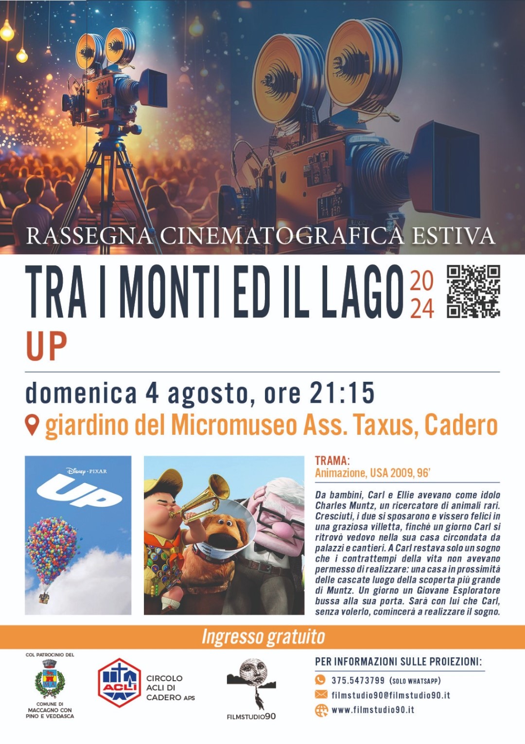 by Pro Loco Eventi 29 Luglio 2024 Rassegna cinematografica estiva con la proiezione del film d’animazione Disney “Up” ad ingresso gratuito.Quando: 4 agosto ore 21:15 Dove: giardino del Micromuseo Ass. Taxus, Cadero evento Share:
